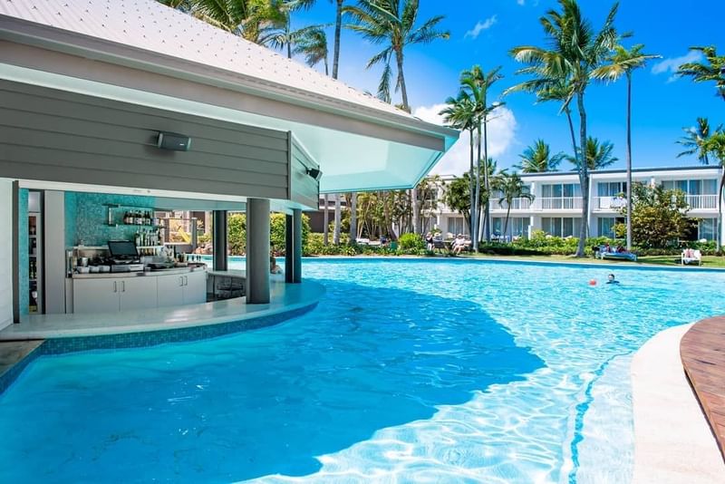 Barefoot Bar, a favorite among guests, offers the ultimate poolside experience. Centrally located amidst the resort’s stunning pool landscapes and encircled by lush tropical gardens, this iconic swim-up bar invites you to unwind and enjoy a refreshing cocktail, beer, or soft drink. Whether you're floating in the water or soaking up the tropical ambiance, Barefoot Bar is the perfect spot to relax and indulge.